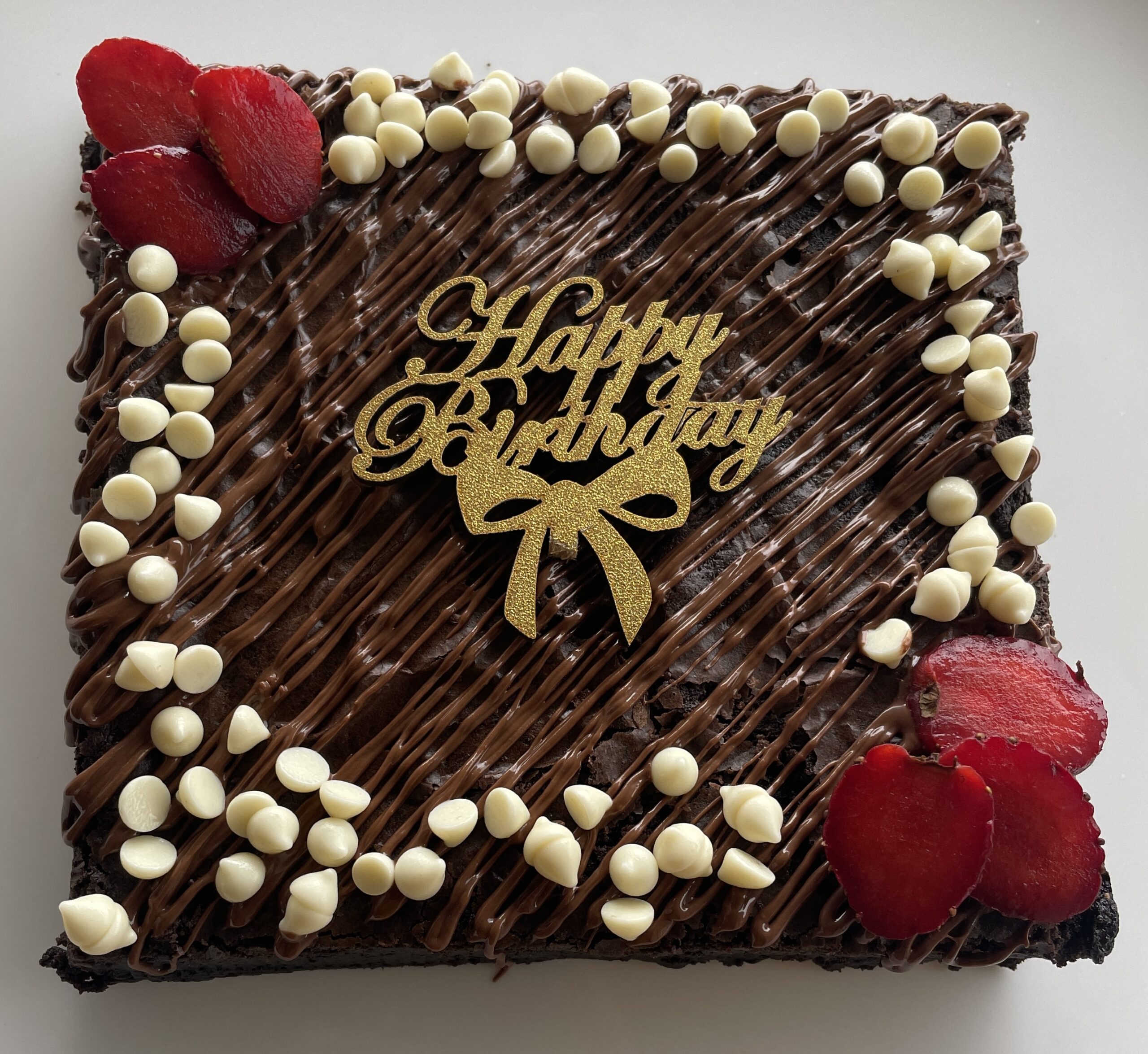 A luxurious small brownie custom slab, freshly baked to order with rich chocolate flavor and soft, fudgy texture. Each bite delivers pure indulgence, perfect for small celebrations, personalized gifts, or everyday treats.